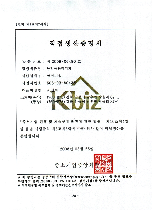직접생산증명서 페이지 정보 작성자 최고관리자 댓글 0건 조회 1,230회 작성일 11-03-23 13:22 목록 본문 직접생산증명서 이전글디자인등록증 11.03.24 다음글전시출품증서 11.03.23 댓글 0 댓글목록 등록된 댓글이 없습니다.